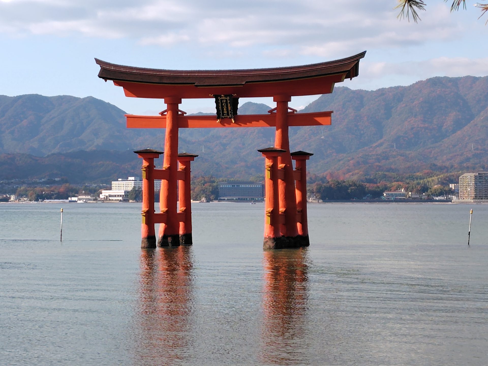 *宮島の厳島神社鳥居(12月10日に海宴殿撮影)